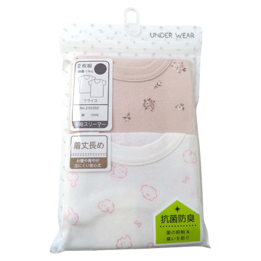 ベビー 綿100%フライス 総柄&総柄 2枚組半袖スリーマー