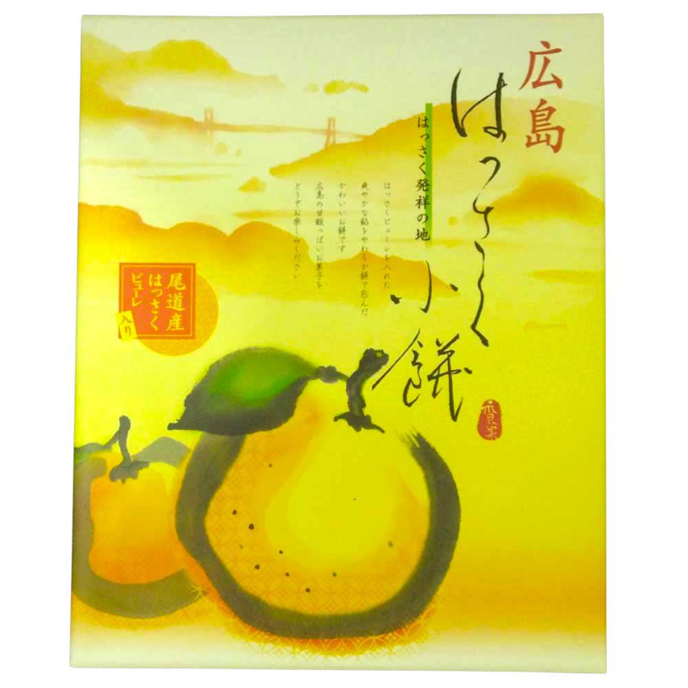 尾道特産のはっさく果実を収穫後すぐにピューレに加工した物を、餡に混ぜ込み丁寧にやわらか餅で包みました。