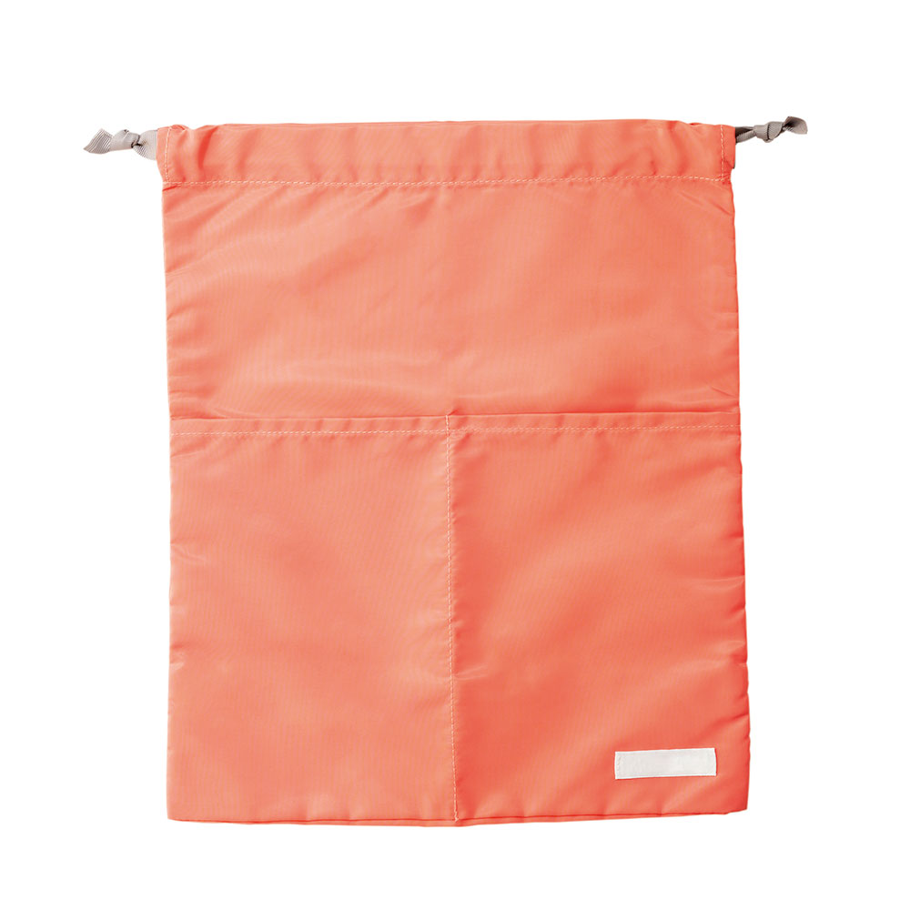 旅行やお泊り会に便利な紐付き巾着。外ポケットもついているので、小物の収納にも便利。