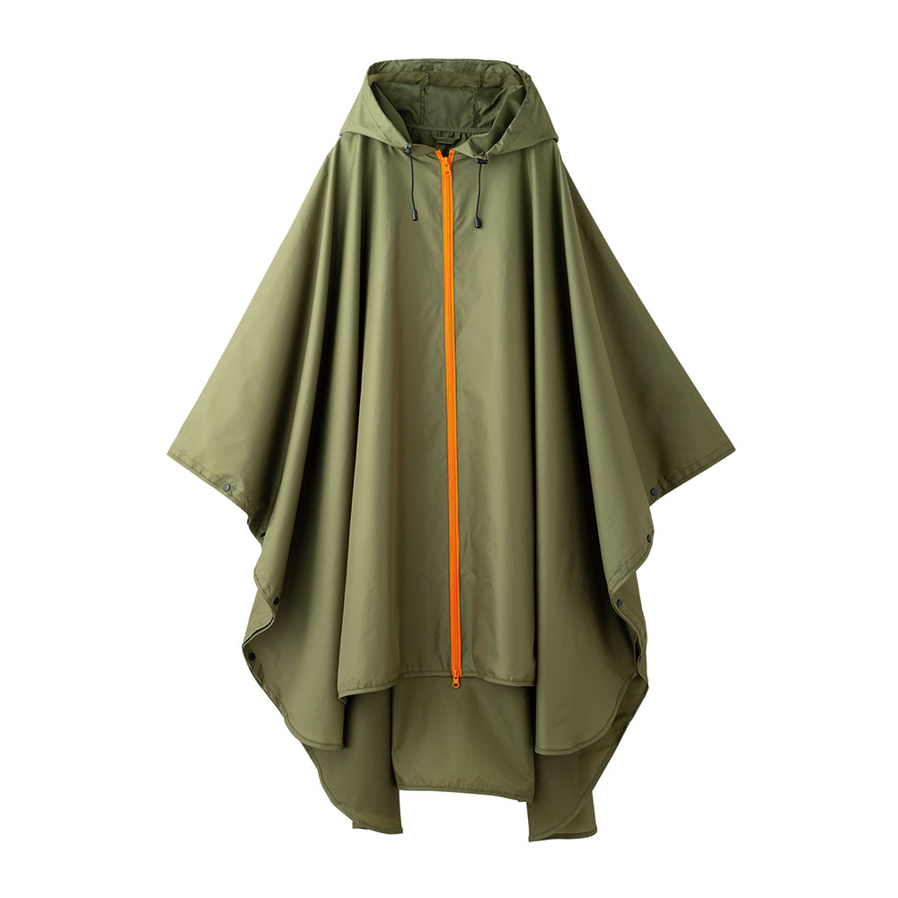 ファスナー部分が配色されておりファッション性のあるレインポンチョ。