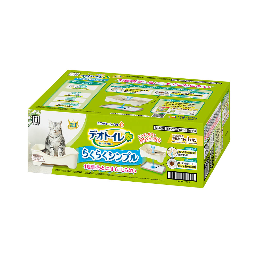 1週間ずっと、ニオイこもらない。撥水サンドで、サンド表面にオシッコ汚れを残さない構造。銀イオン配合シート。ニオイ菌99.9%抑制。シートは週1回、サンドは月1回交換でお手入れ簡単。※愛猫1頭(体重8kgまで)使用時。ウンチをした場合は早く取り除いてください。オシッコ汚れとはサンド表面に残ったオシッコ液のこと。第三者機関による抗菌性試験結果。すべての菌を抑制するわけではありませんご使用の前にお読みください用途以外には使用しないでください。トイレは汚れてもかまわない場所、平らな場所に置いて使用してください。トイレは暖房器具の近くに置いたり、熱湯をかけたりしないでください。人やペットのやけど、火災、製品が変形する恐れがあります。トイレを移動する時には、スノコ容器を持つとはずれる場合があるので、トレー取っ手部を持って運んでください。「専用取替サンド」「専用取替シート」は直射日光・高温多湿を避け、食器、おもちゃ、ペットフード等と区別し、小児の手の届かない場所に保管してください。また開封後は、ほこりや虫が入らないよう封をしっかり閉じて保管してください。「専用取替サンド」が万一、トイレから飛び散った場合には、足をすべらせる恐れがあるので、すぐに片付けてください。「専用取替シート」は、【デオトイレ】専用です。単体で犬用トイレシート(ペット用トイレシート)として使用しないでください。【!】「専用取替サンド」と「専用取替シート」は食べられません。飲み込んだ場合は医師や獣医師にご相談ください。本品は直射日光・高温多湿・火気付近を避け、食器、おもちゃ、ペットフード等と区別し、小児の手の届かない場所に保管してください。また開封後は、ほこりや虫が入らないよう封をしっかり閉じて保管し、お早めにご使用ください。本品の空き袋をおもちゃにしないでください。