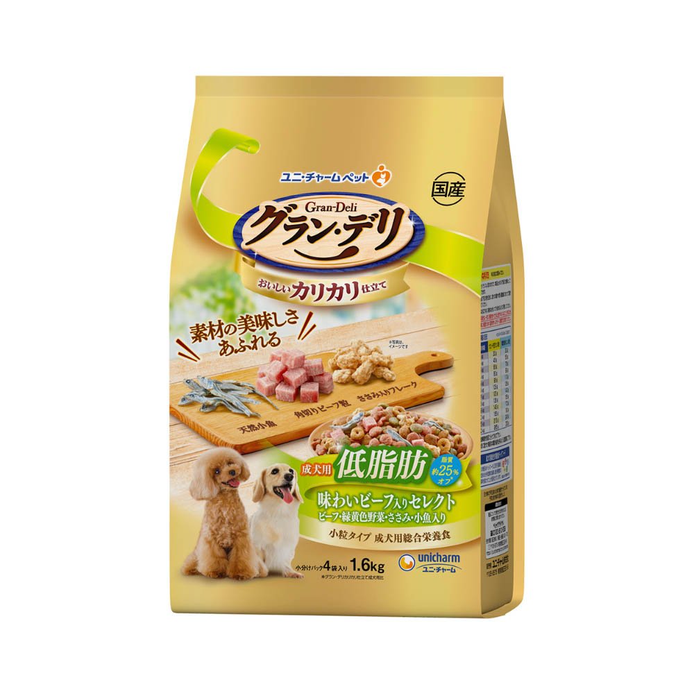 グラン・デリ カリカリ仕立て 成犬用低脂肪味わいビーフ入りセレクト-脂肪分約25%カット1.6kg