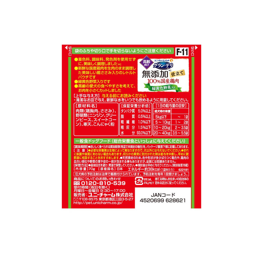 グラン・デリ 無添加仕立て 国産 パウチ 高齢犬用緑黄色野菜入り70g