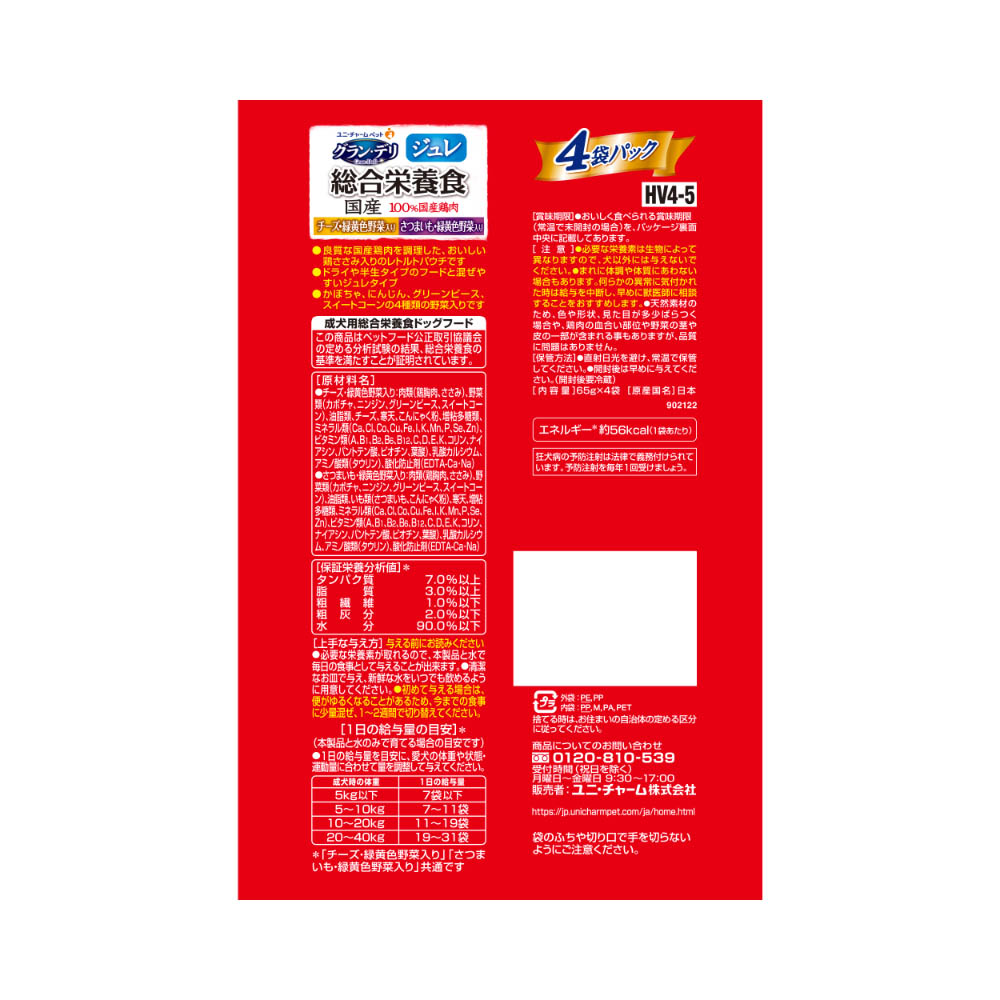 グラン・デリ 総合栄養食 国産 パウチジュレ 成犬用さつまいも入り・チーズ入り65g×4袋