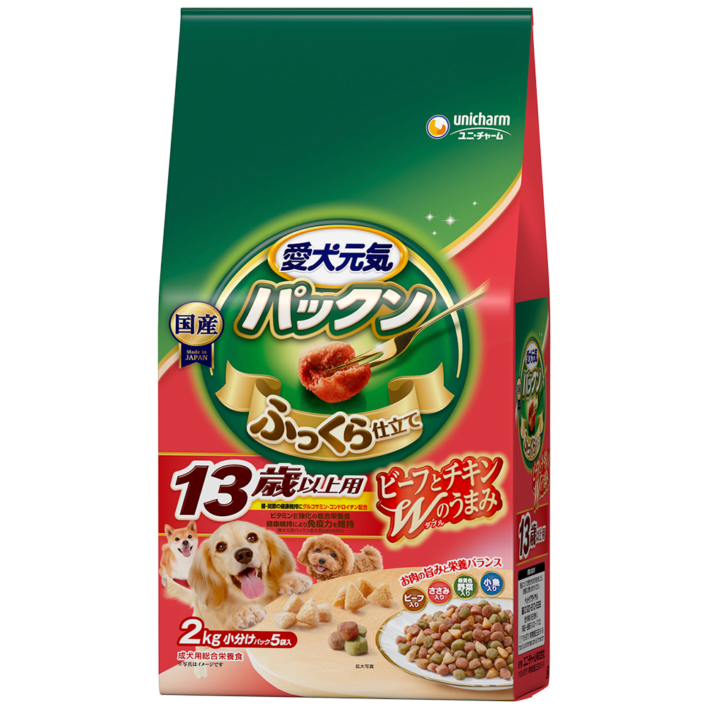 愛犬元気 パックン13歳以上用ビーフ・ささみ・緑黄色野菜・小魚入り2.0Kg