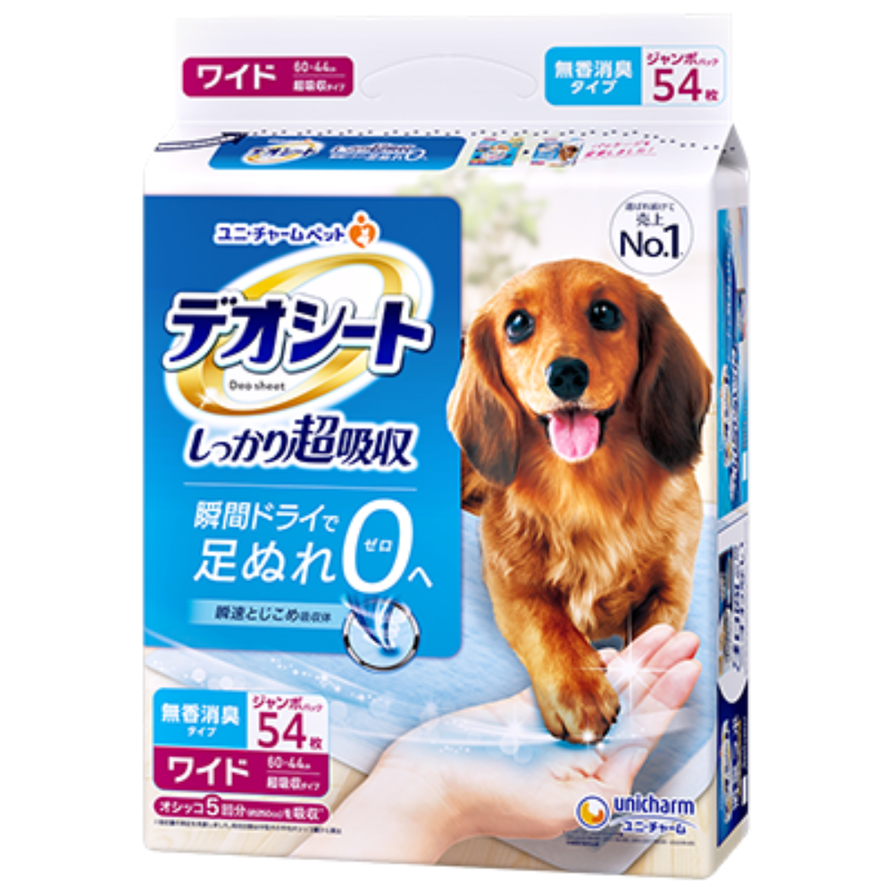 大改良の瞬間吸収体がオシッコの広がり35%低減するペットシートです。※メーカー従来品比、90cc尿量を想定、メーカー調べ。オシッコを瞬間吸収して長時間ニオイを閉じ込める無香消臭タイプ。オシッコ5回分(約150cc)をしっかり超吸収。※小型犬の平均オシッコ量から算出。吸収性能を高めながら13%スリムになってコンパクト収納!※メーカー従来品比、折りたたんだ時。シートサイズ:60 ×44cm。