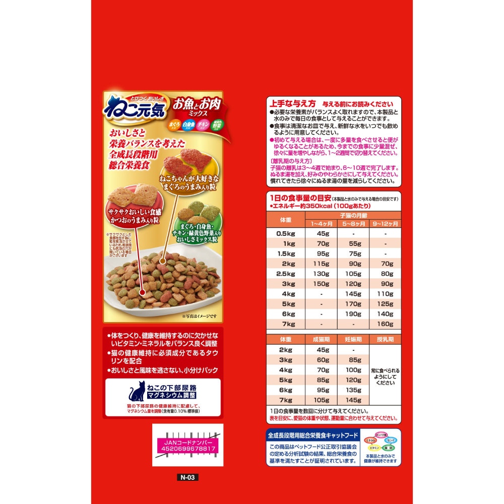 ねこ元気 お魚とお肉ミックスまぐろ・白身魚・チキン・緑黄色野菜入り2kg