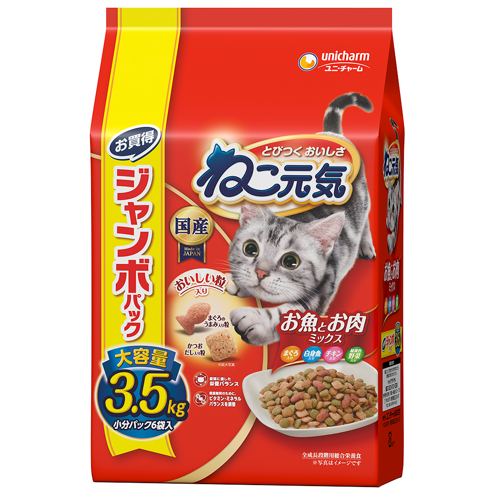 ねこ元気 お魚とお肉ミックスまぐろ・白身魚・チキン・緑黄色野菜入り3.5kg