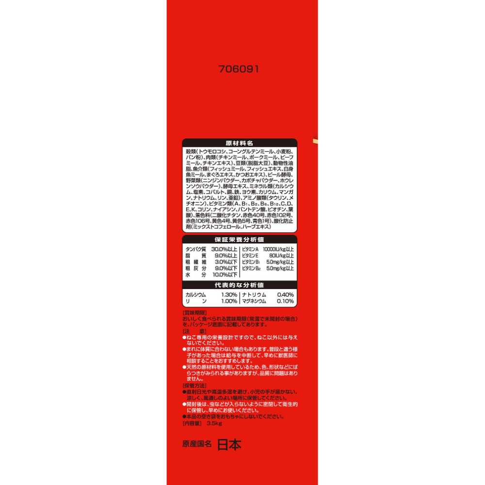サクサクおいしい食感のかつおだし入り粒とまぐろのうまみ入り粒が入ってとびつくおいしさ。おいしさと栄養バランスを考えた総合栄養食。体をつくり、健康を維持するのに欠かせないビタミン、ミネラルをバランス良く調整。まぐろ・白身魚・チキン・緑黄色野菜入り。