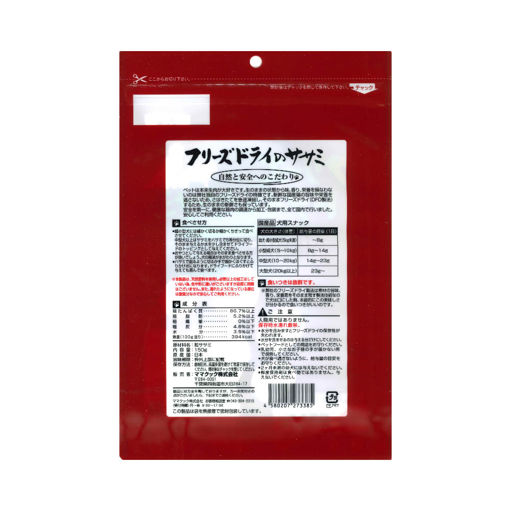 ママクック フリーズドライササミ犬用150g