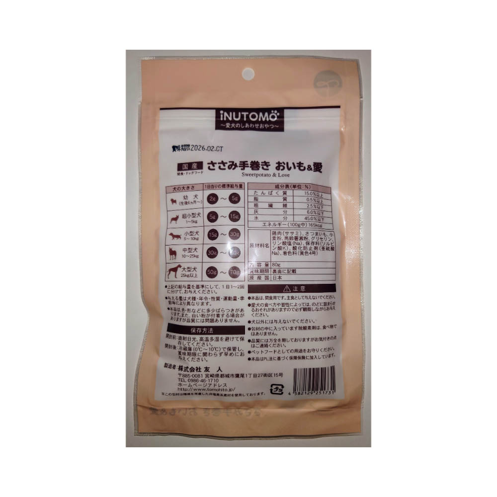 iNUTOMO ささみ手巻き おいも&愛80g