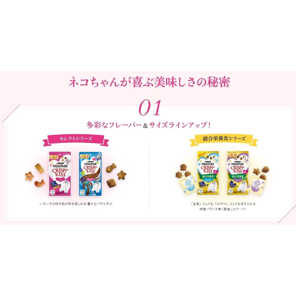 グレイビーソースをかけたチキンの魅惑的な味わいと香りが広がるクリスピーなおやつ。チキンを第一主原料にお肉の味わい溢れるソースで味付けしたマーブル粒にネコちゃんも大満足。