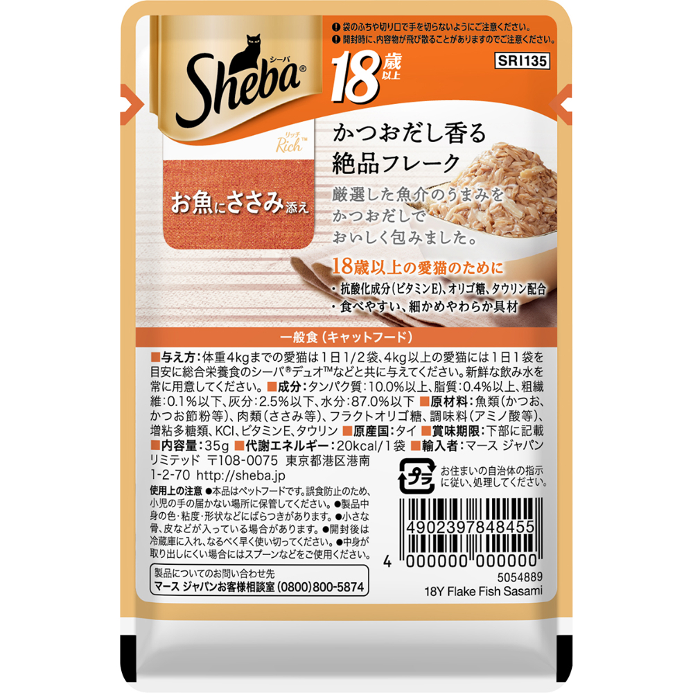 厳選した魚介のうまみをかつおだしでおいしく包んだ絶品フレーク。18歳以上の愛猫も食べやすい、細かめやわらか具材。