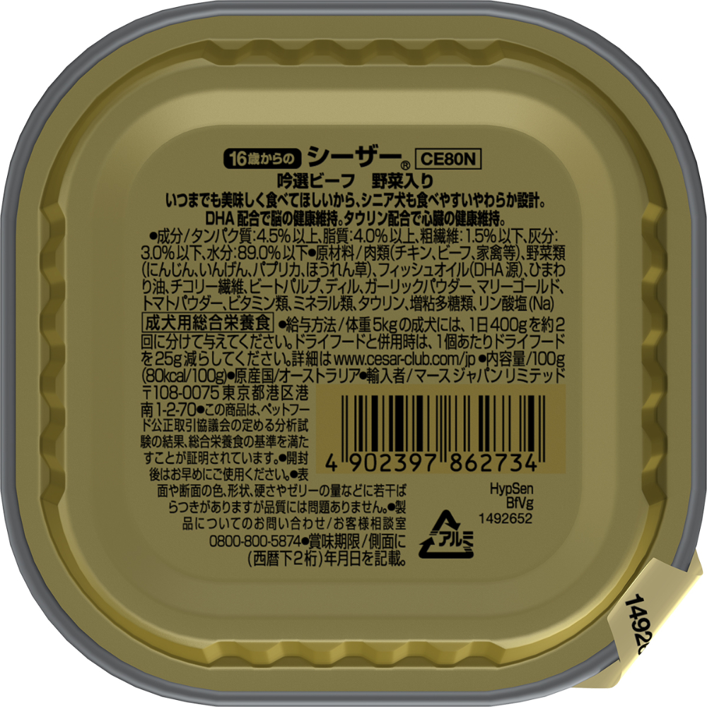 シーザー 16歳からの 吟選ビーフ 野菜入り100g