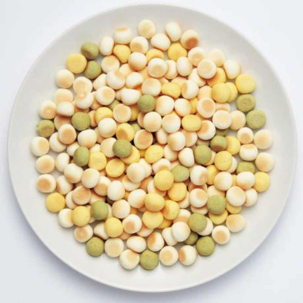 関節の健康維持にグルコサミン・コンドロイチン配合。からだにうれしい砂糖50%オフ(当社「体にうれしい ボーロちゃん 乳酸菌入り」比)&カルシウム・オリゴ糖配合。β-カロテン豊富なかぼちゃと鉄分豊富なほうれん草入り。小麦粉・牛乳・保存料・着色料不使用。