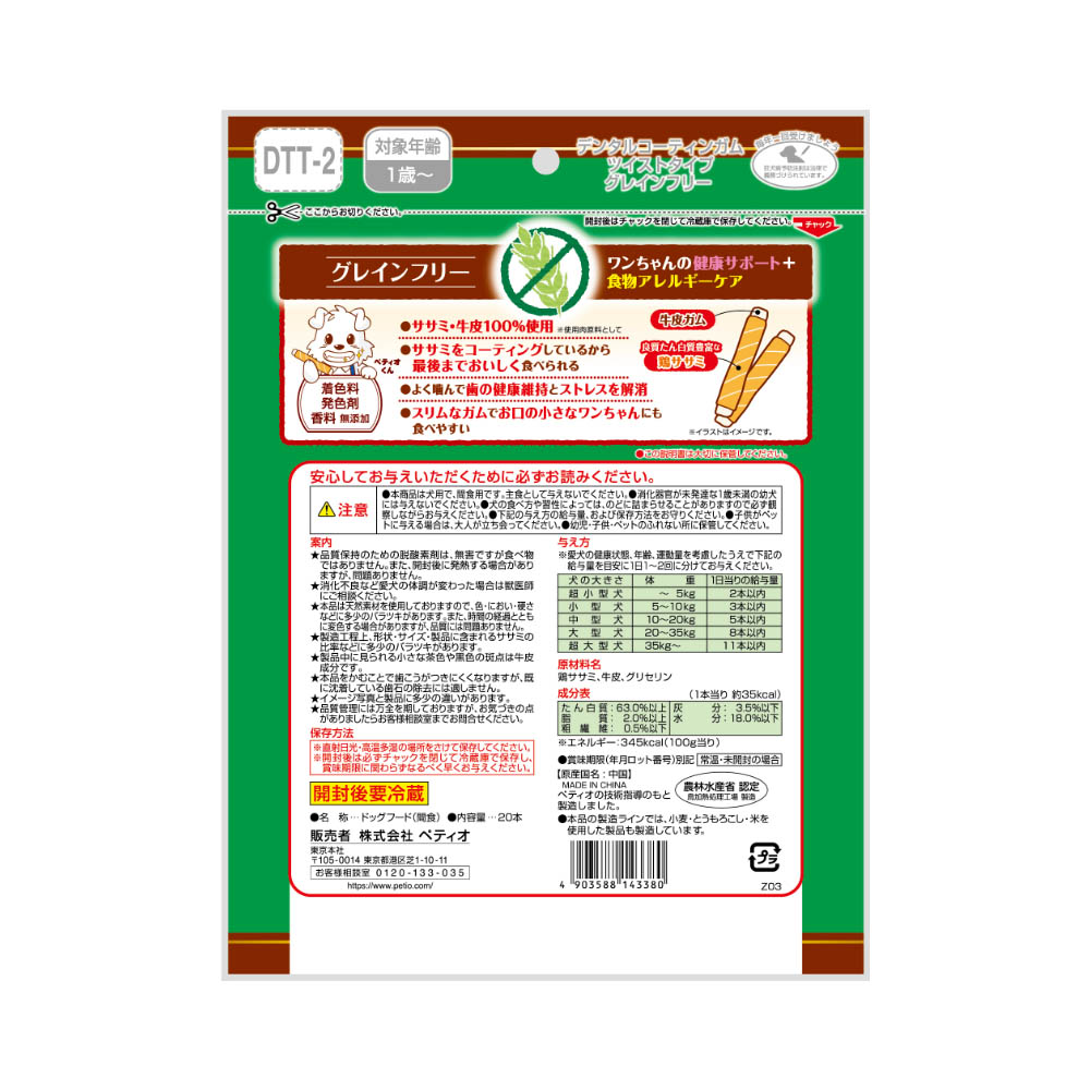 ペティオ デンタルコーティンガム ツイストタイプ グレインフリー20本