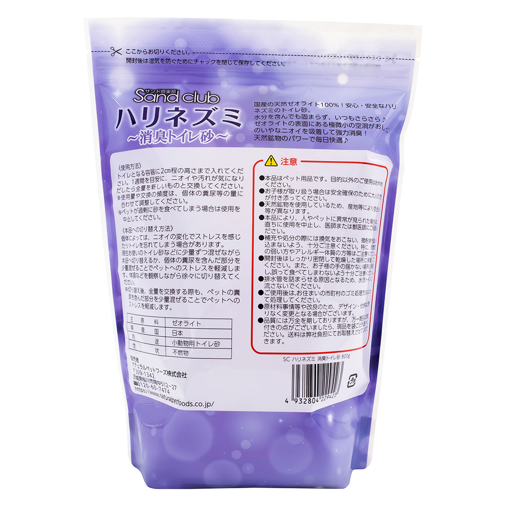 国産ゼオライト100%!安心・安全なハリネズミのトイレ砂。水分を含んでも固まらず、いつもさらさら♪ゼオライトの表面にある極微小の空洞がおしっこのいやなニオイを吸着して強力消臭!天然鉱物のパワーで毎日キレイ♪