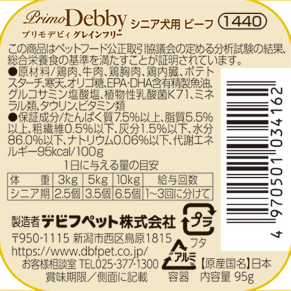 プリモデビィ グレインフリー シニア犬用 ビーフ95g