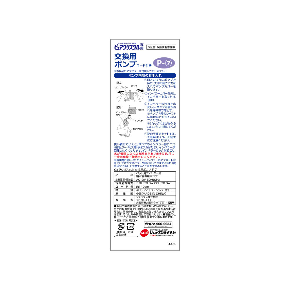 ジェックス ピュアクリスタル 交換用ポンプ P-7