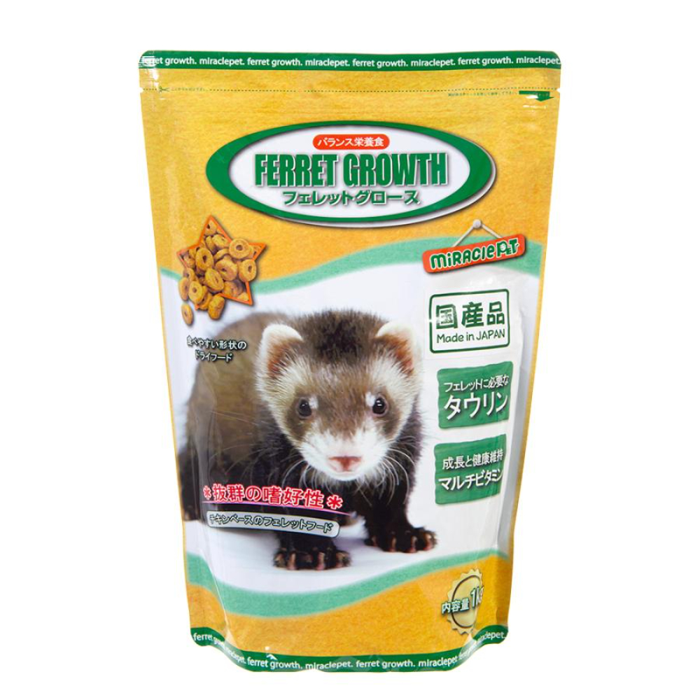 フェレットグロースは、栄養のバランスと、嗜好性を重視して作られた、フェレット専用のドライフードです。本品は、フェレットの健康維持と活力に有用なビタミン・ミネラル等をバランス良く配合しています。フェレットに必要なアミノ酸(タウリン)を配合しています。お腹に優しいビール酵母を配合しています。着色料は使用していませんので、フェレットに安心して与えることができます。