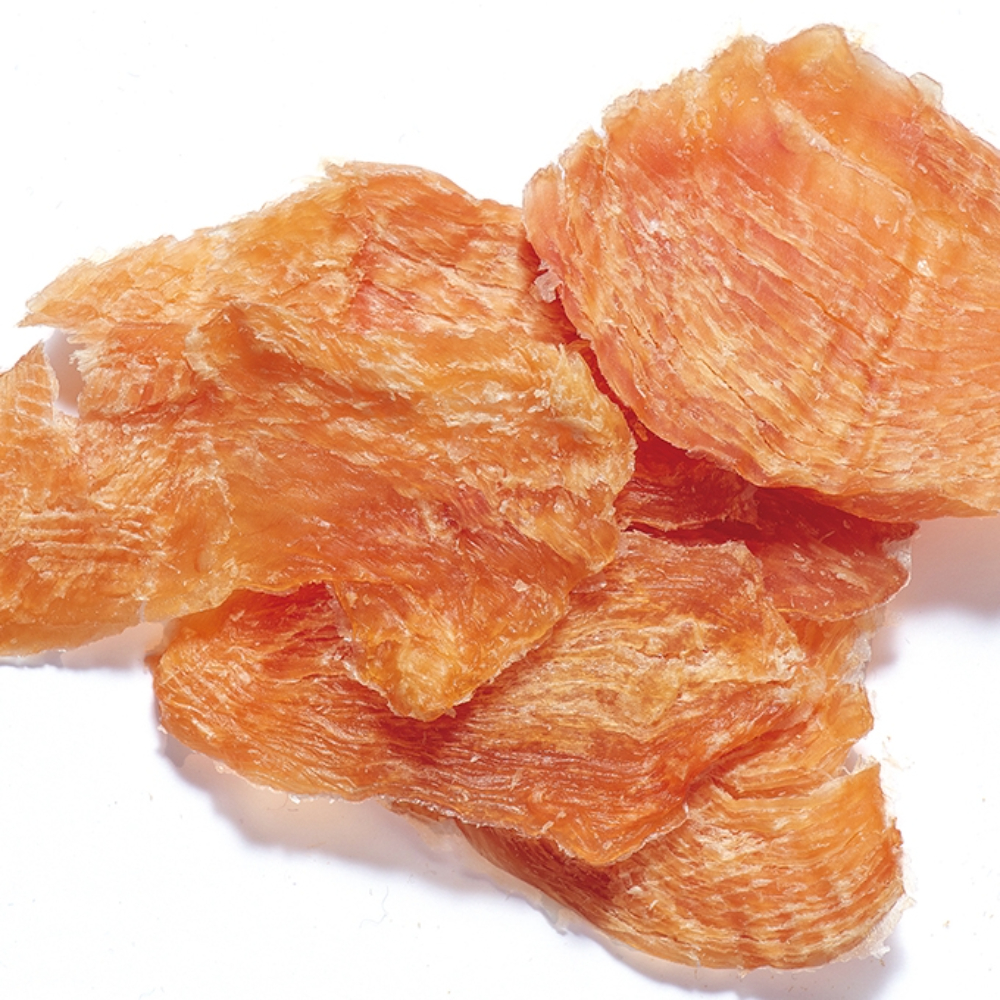 手でさくようにちぎって与えやすい、香ばしい鶏むね肉のおやつ。