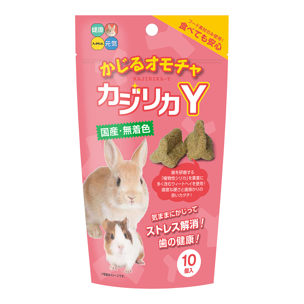気ままにかじってストレス解消。転がらないY型。歯を研磨する「植物性シリカ」を葉茎に多く含むプレミアムウィートヘイを使用。