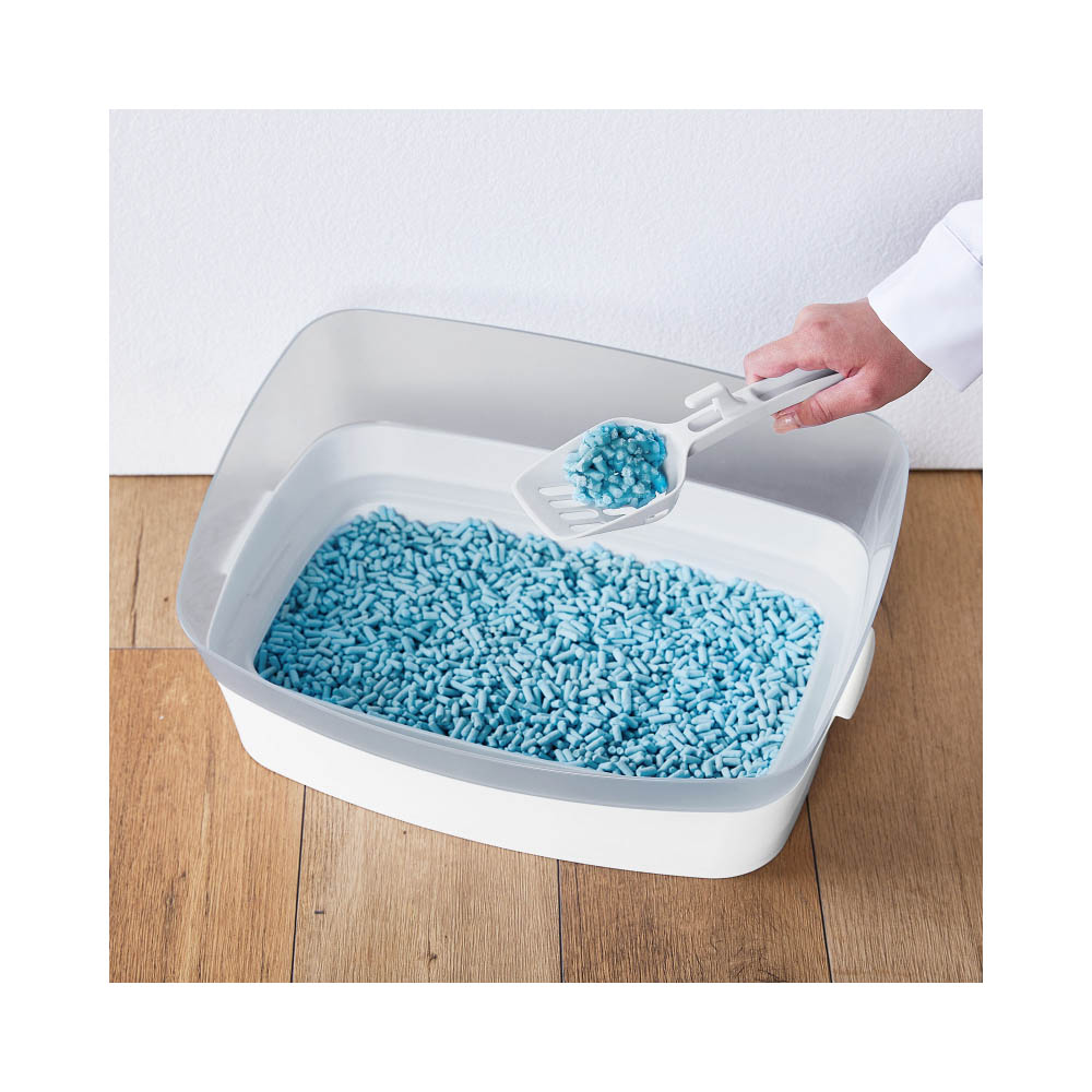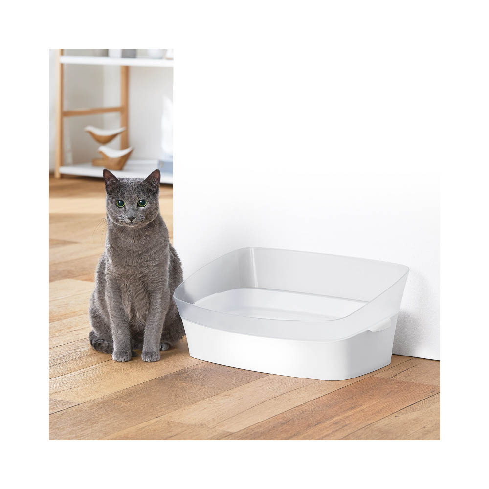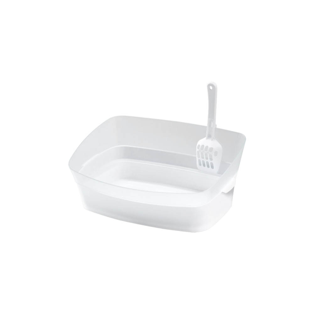 お部屋に置きやすい、クールでスタイリッシュな猫用トイレ。カバーとトレーの二重構造で、気になる猫砂の飛び散りをブロックします。トイレの内側は足場付きで、猫砂を足に付けたくないキレイ好きな猫ちゃんでも快適に使えます。カバーとトレーは簡単につけ外し可能。凹凸が少なく、お手入れしやすい形状です。猫用サークルの中にもスッキリ納まるサイズ設計です。専用スコップ付属使用中に破損・変形・劣化が見られた場合は、直ちに使用を中止してください。本製品は猫用の室内専用トイレです。他の用途には使用しないでください。安全にお使いいただくために、ご使用前に本体付属の取扱説明書を必ずお読みください。サークル内で使用される場合は、事前にサイズをご確認ください。