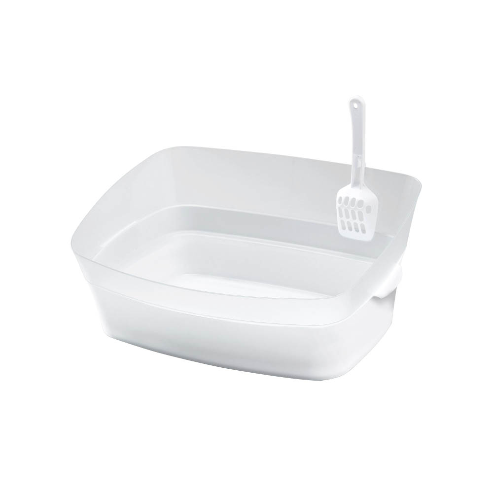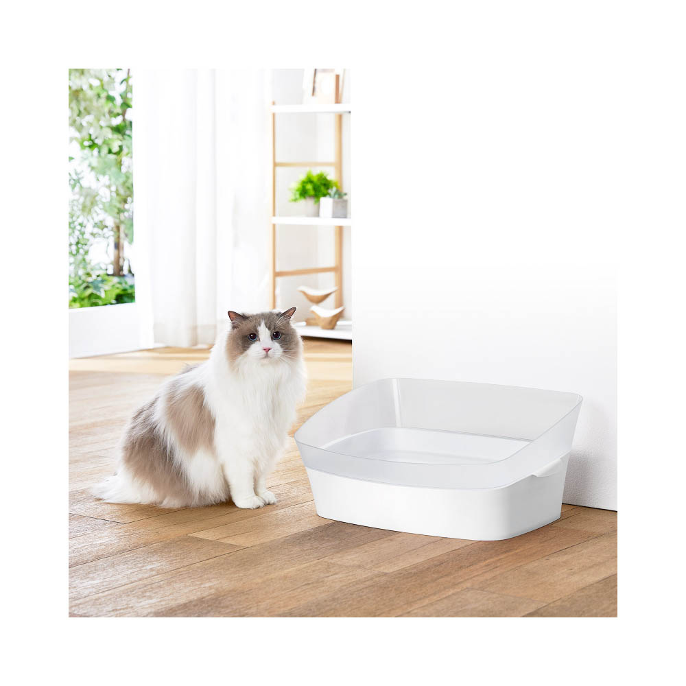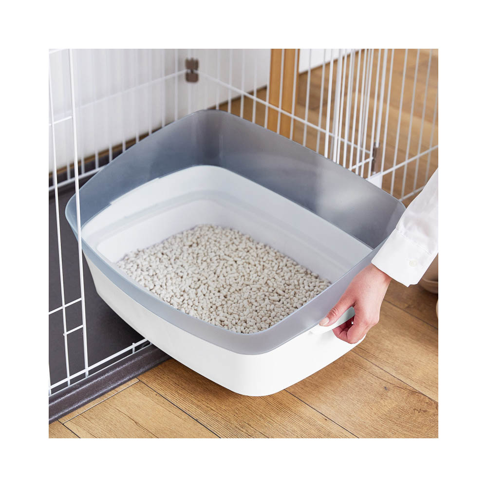 お部屋に置きやすい、クールでスタイリッシュな猫用トイレ。カバーとトレーの二重構造で、気になる猫砂の飛び散りをブロックします。トイレの内側は足場付きで、猫砂を足に付けたくないキレイ好きな猫ちゃんでも快適に使えます。カバーとトレーは簡単につけ外し可能。凹凸が少なく、お手入れしやすい形状です。猫用サークルの中にもスッキリ納まるサイズ設計です。専用スコップ付属使用中に破損・変形・劣化が見られた場合は、直ちに使用を中止してください。本製品は猫用の室内専用トイレです。他の用途には使用しないでください。安全にお使いいただくために、ご使用前に本体付属の取扱説明書を必ずお読みください。サークル内で使用される場合は、事前にサイズをご確認ください。