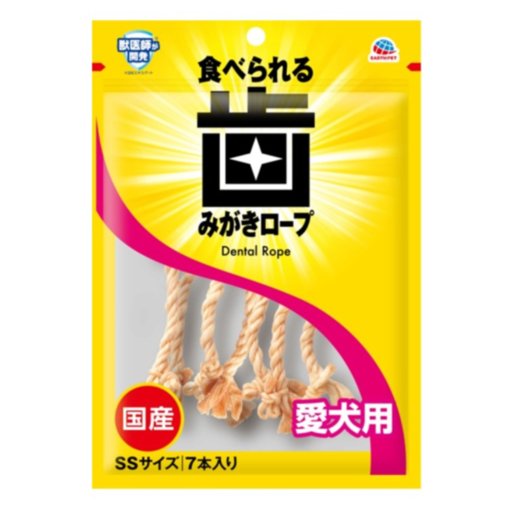 コラーゲン素材を一本一本ていねいに編み込んで作った噛み応えのあるロープ。よく噛むことで、歯垢、歯石をつきにくくし、お口のニオイ、スッキリ。マッサージで歯茎の健康維持。ビーフエキス、ポークエキスがしみ込んだおいしいロープ。食べかすが出にくく衛生的。