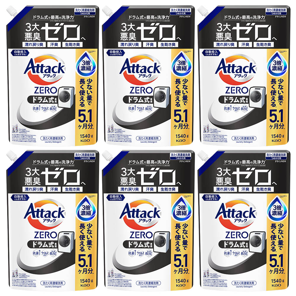 【ケース販売】花王 アタックZERO ドラム式専用 つめかえ用 1540g×6個(店頭受取の場合:薬品売場)