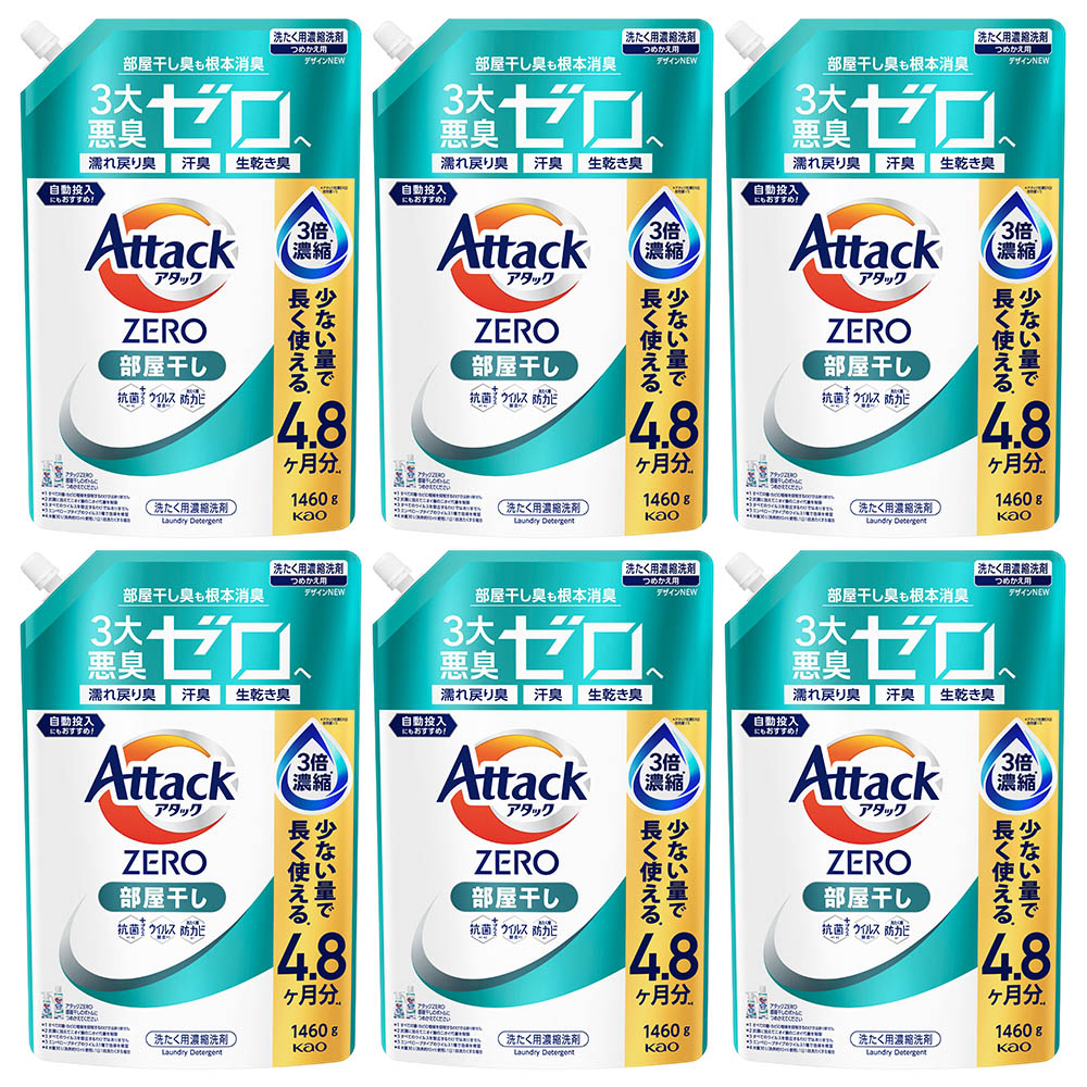 【ケース販売】花王 アタックZERO 部屋干し つめかえ用 1460g×6個(店頭受取の場合:薬品売場)