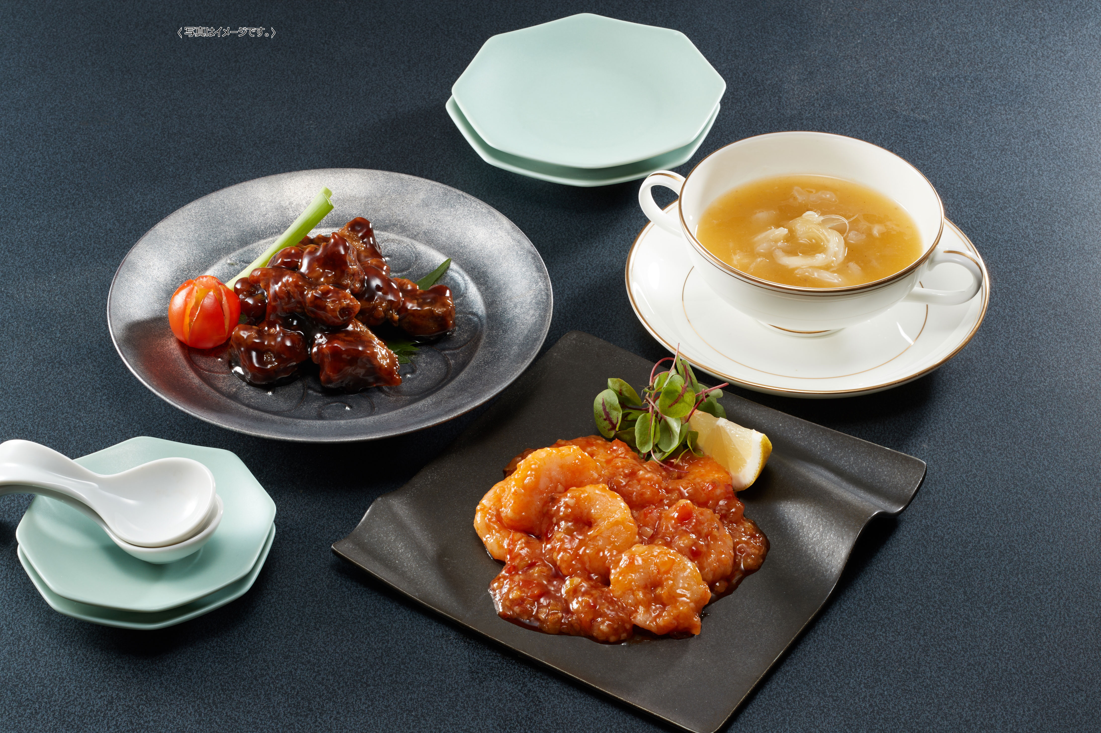 黒酢酢豚 180g・ふかひれと金華ハムの黄金スープ 200g・エビのチリソース煮 180g×各2袋