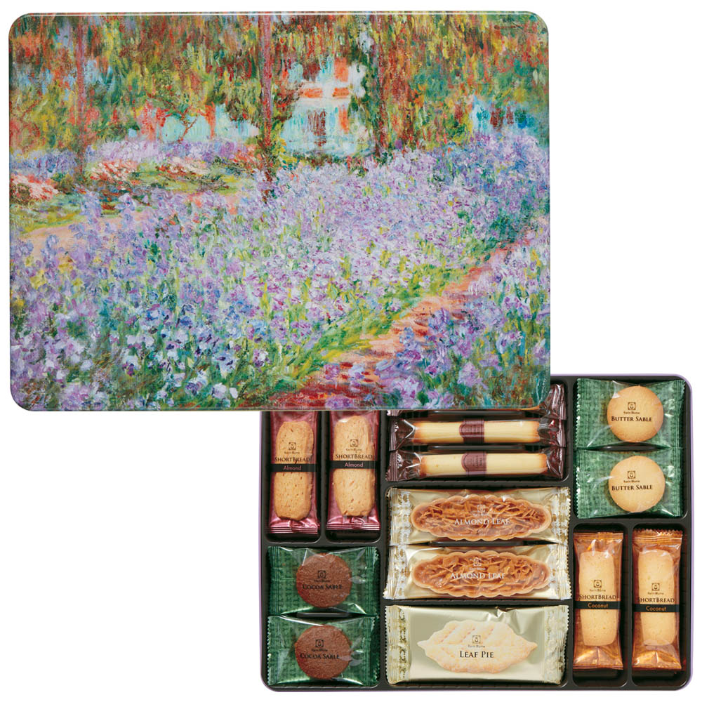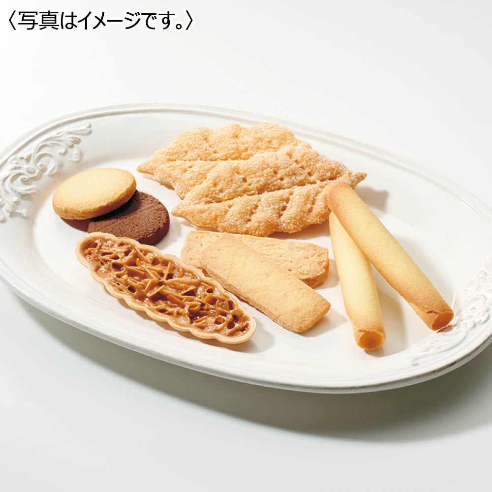 バターサブレ・ココアサブレ×各8、ショートブレッド(アーモンド・ココナッツ)×各8、アーモンドリーフ・ラングローグ×各6、リーフパイ×4 缶サイズ:縦約26.0cm×横約35.0cm×高さ約5.0cm
