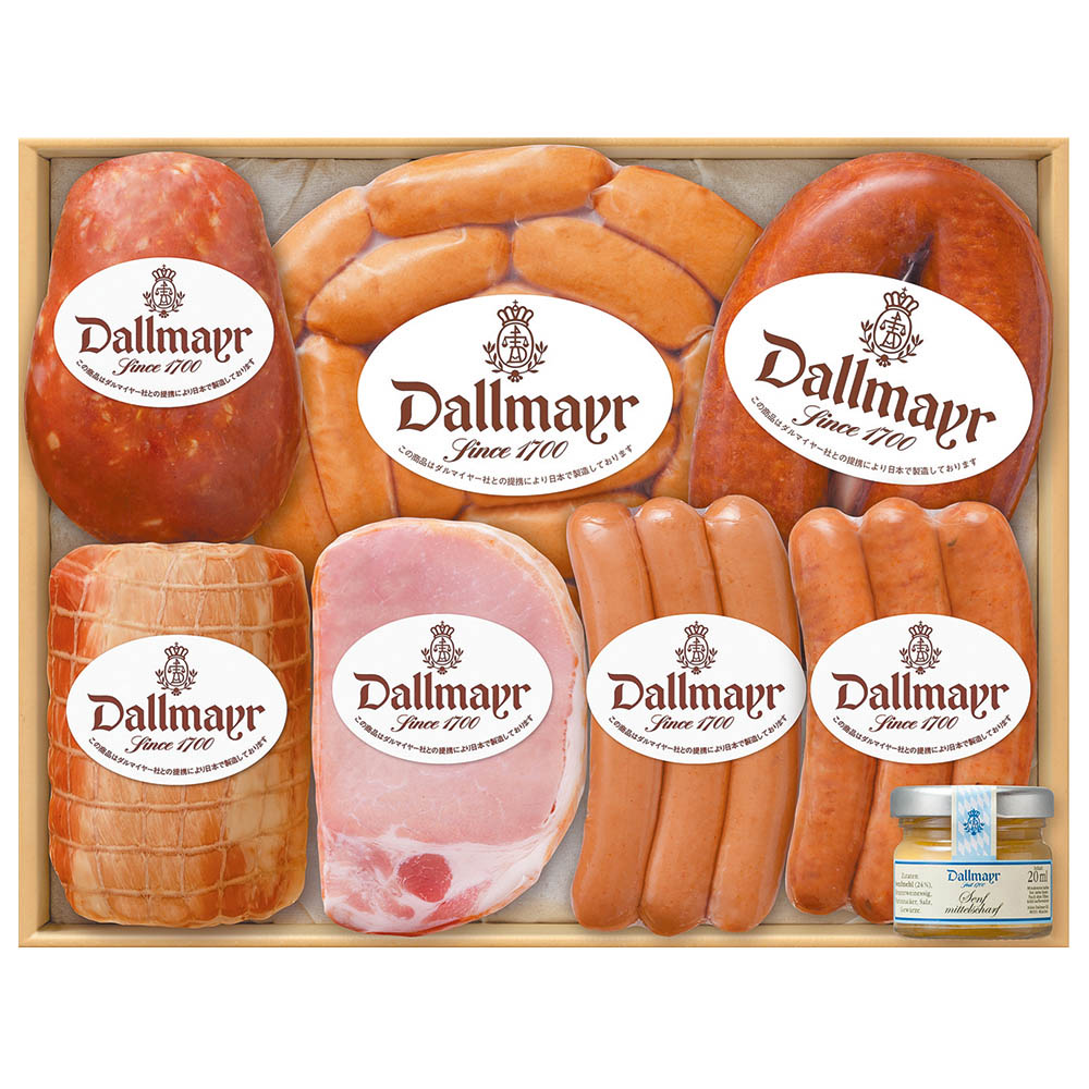 フランクフルターヴルストヒェン 100g・プフェファークナッカー 100g・コクテルヴルストヒェン 250g・バイエリッシュビアヴルスト 290g・カセラーリペール 72g・クラカウアー 270g・カイザーフライシュ 210g・ミニマスタード 25g×各1