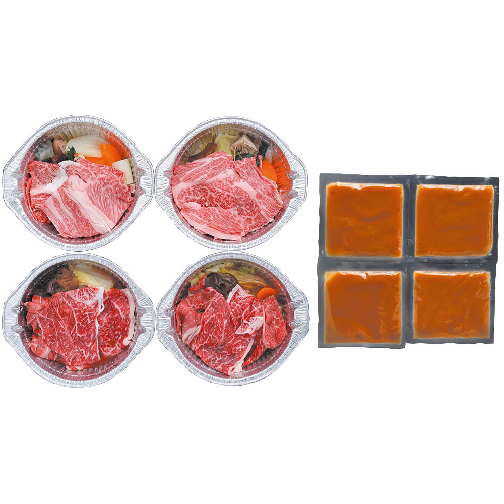 赤身すき焼鍋・霜降りすき焼鍋 各250g×2、すき焼のタレ 130g×4