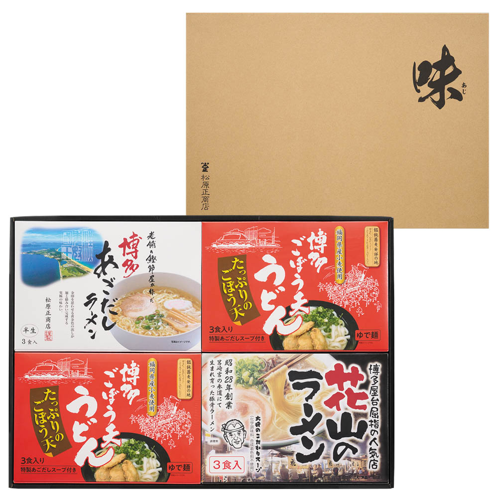 <松原正商店>博多ごぼう天うどん・あごだしラーメン・花山のラーメン詰合せ *