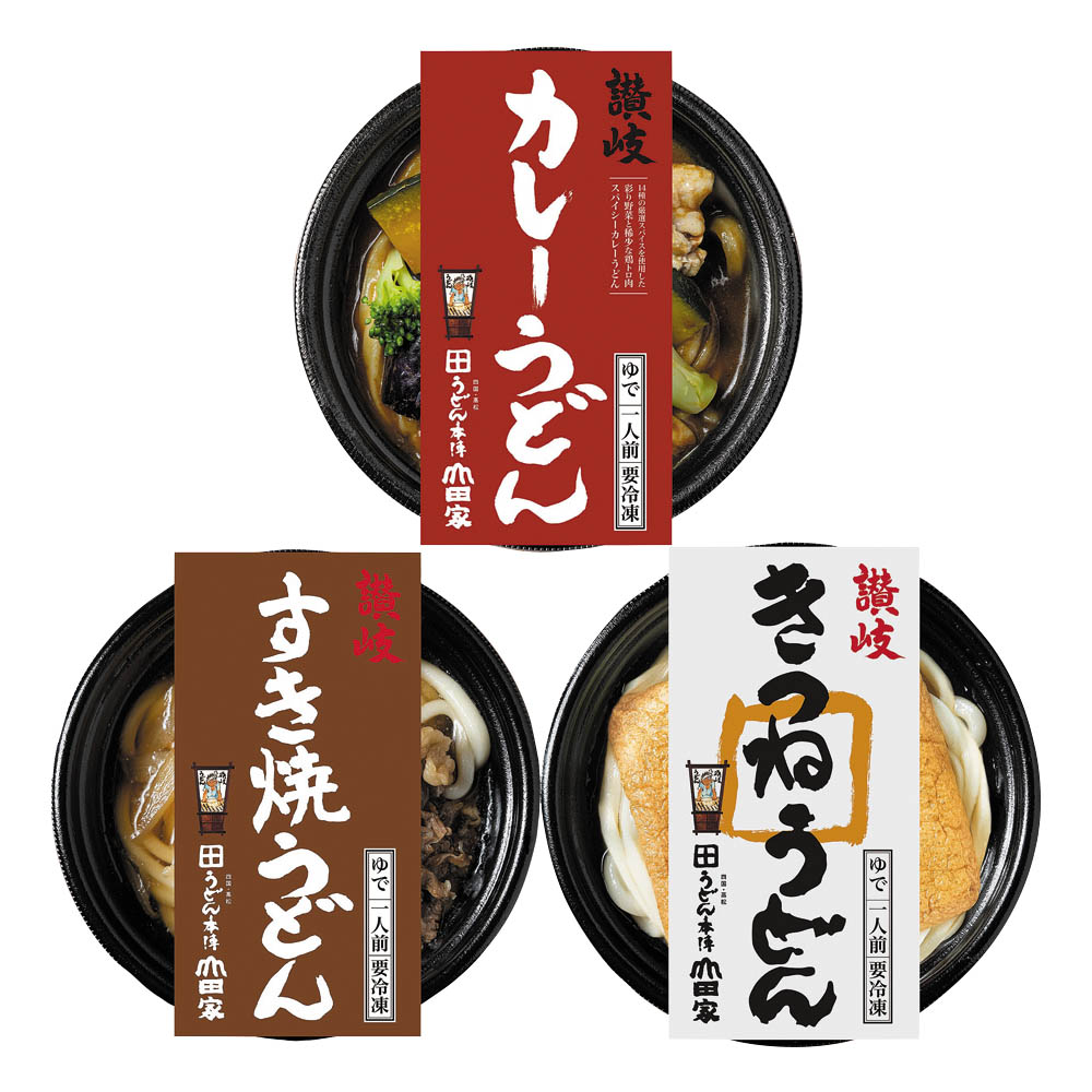 讃岐すき焼うどん 500g、讃岐彩り野菜と鶏カレーうどん 490g、讃岐きつねうどん 480g