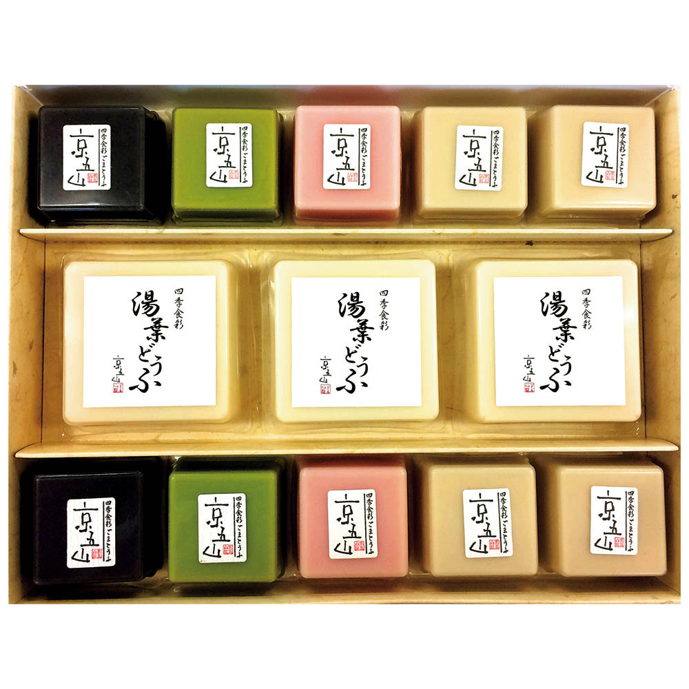 湯葉どうふ 100g×3、ごまとうふ(白) 50g×4、ごまとうふ(黒・抹茶・しそ) 各50g×2、ごま醤油ジュレ 5g×5
