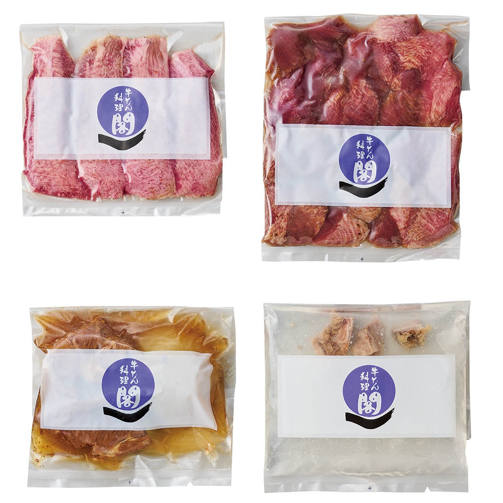 閣の特上厚切り生牛たん 特製塩味 100g、閣のコロコロ牛たん 特製塩味 200g、閣の特製テールスープ・玉ねぎと牛たんの柔らか角煮 各250g