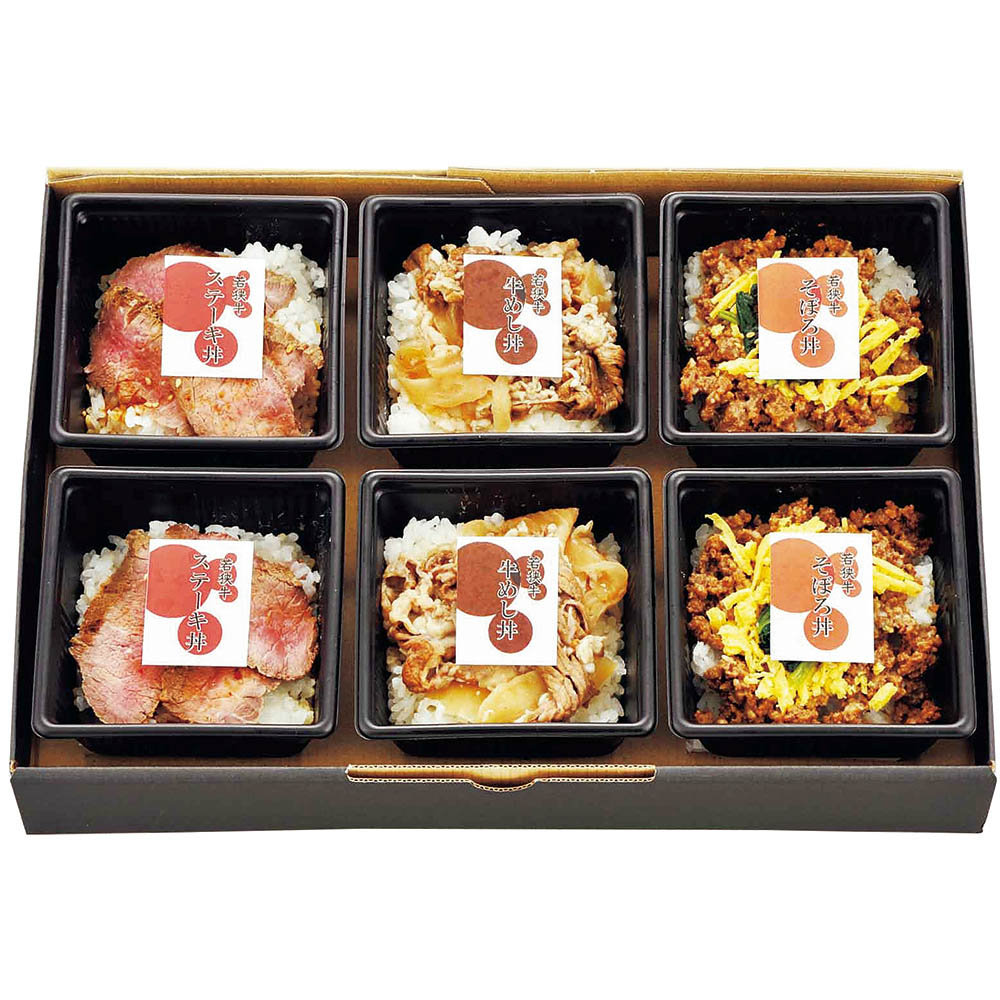 若狭牛ステーキ丼・若狭牛めし丼 各120g×2、若狭牛そぼろ丼 135g×2