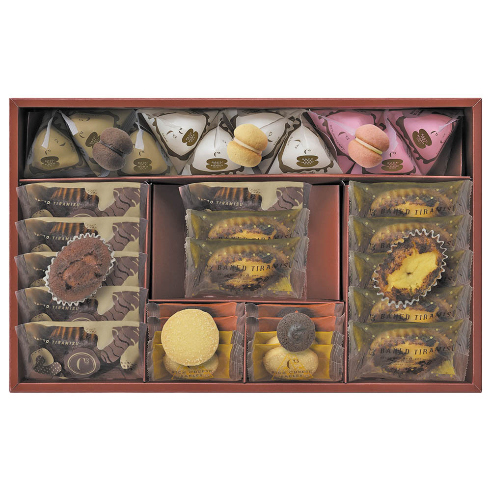 焼きティラミス×7、焼きティラミスショコラ×6、チョコサンドクッキー(ミルク×4、いちご・チョコレート×各3)、ハイカカオブラウニー・芳醇チーズサブレ×各4