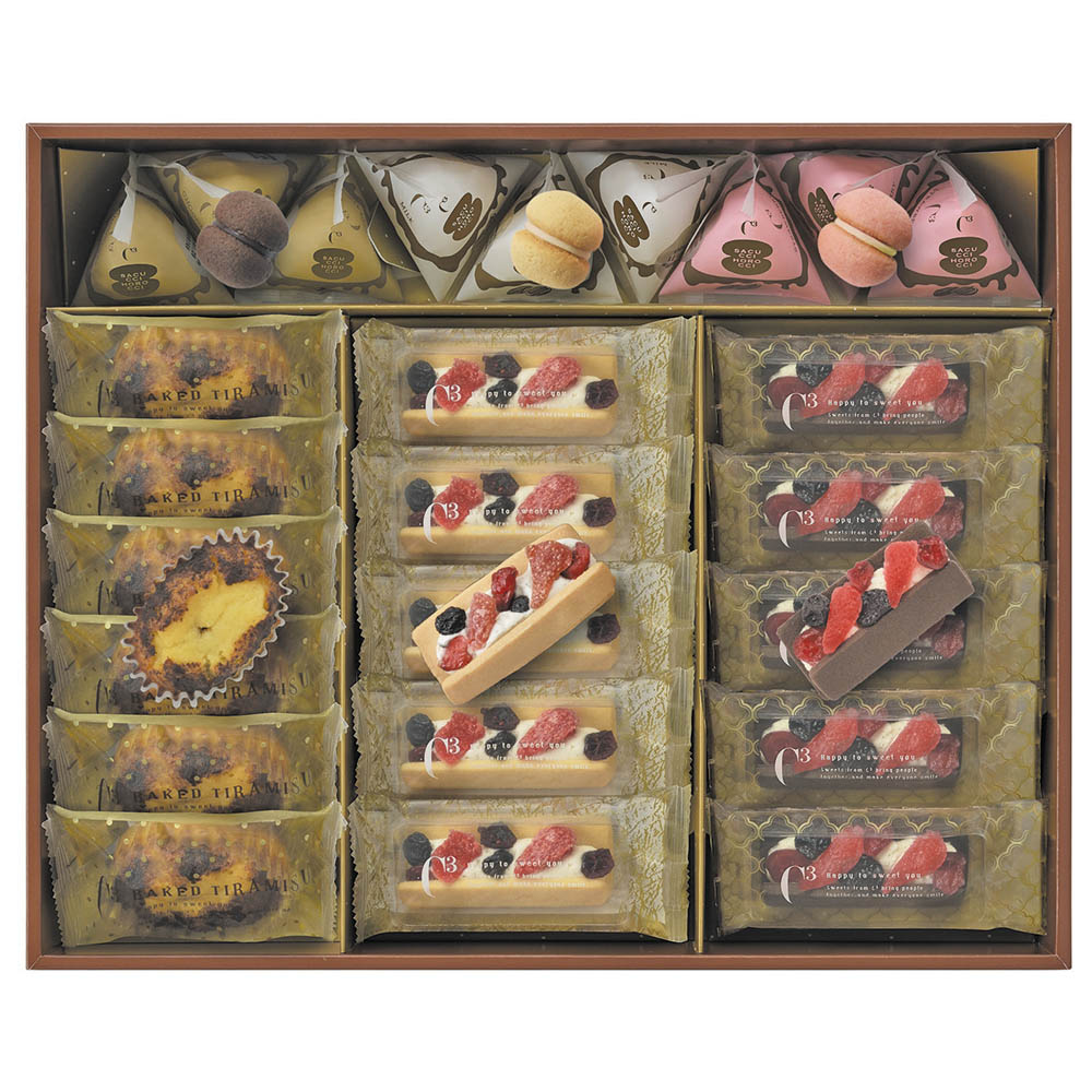 焼きティラミス×6、ベリーウィッチ・カカオベリーウィッチ×各5、チョコサンドクッキー(ミルク・いちご・チョコレート×各3)