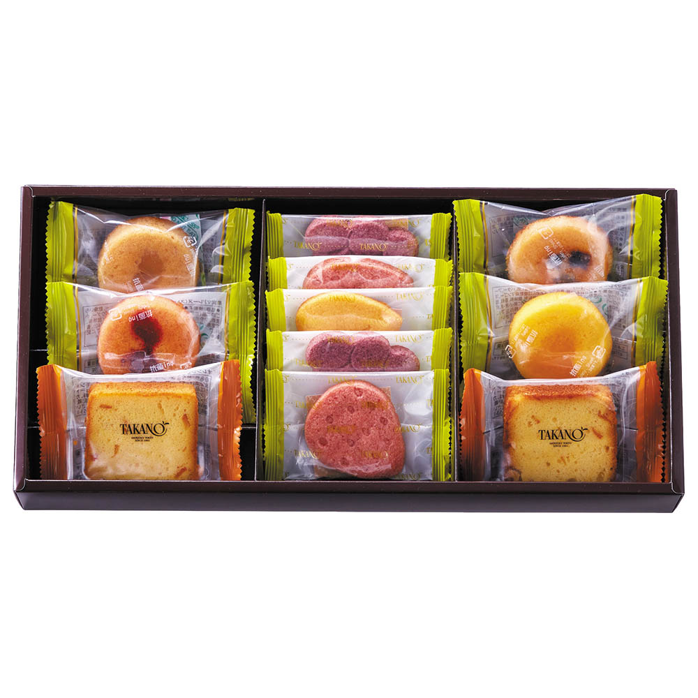 果実マドレーヌ(ストロベリー、ブルーベリー、りんご、マンゴー)、オレンジケイクカット×2、果実サブレ(いちご・ぶどう×各2、マンゴー)