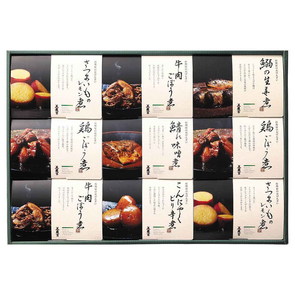 牛肉ごぼう煮 60g、さつまいものレモン煮 70g・鶏ごぼう煮 70g×各2、鰯の生姜煮・鯖の味噌煮 各70g、こんにゃくピリ辛煮 5個