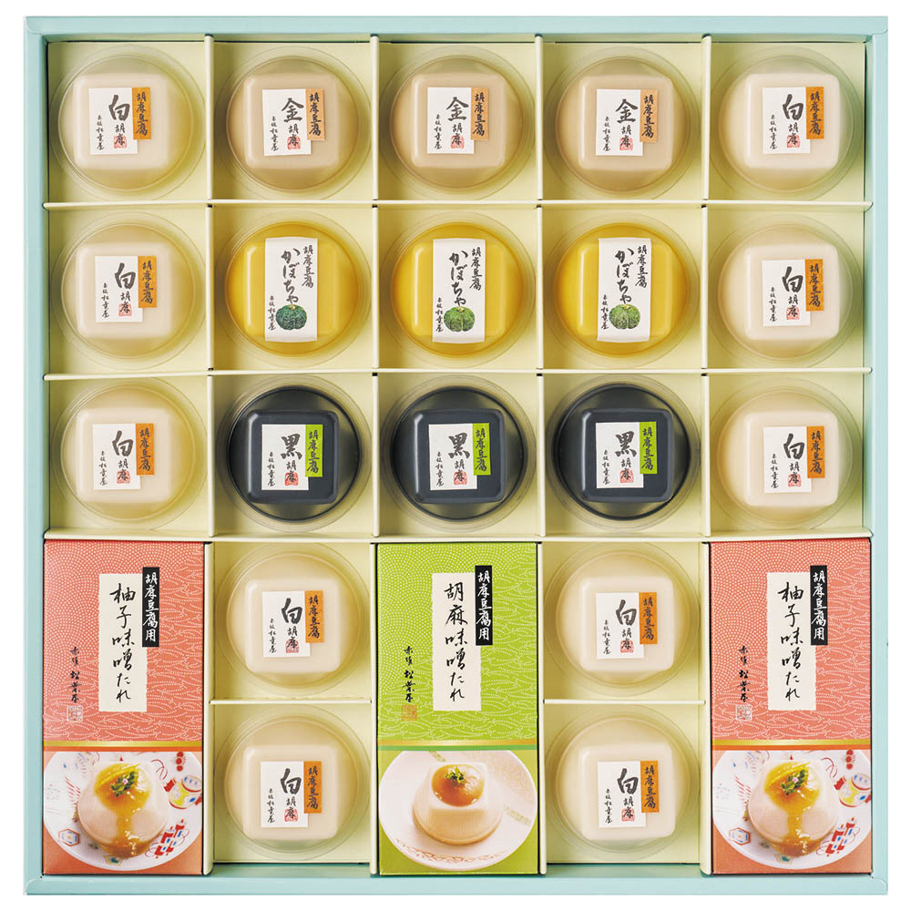 胡麻豆腐(白 43g×10、かぼちゃ・金・黒 各43g×3、柚子味噌たれ 7g×12、胡麻味噌たれ 7g×7)