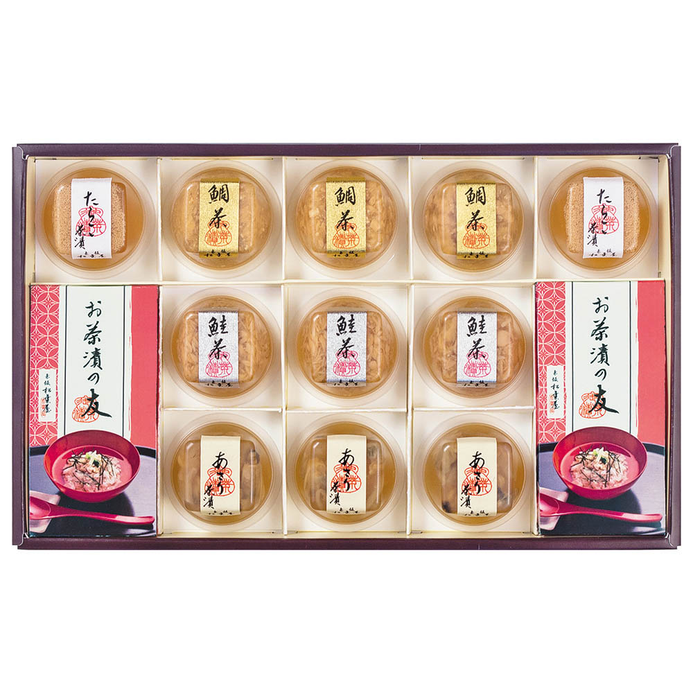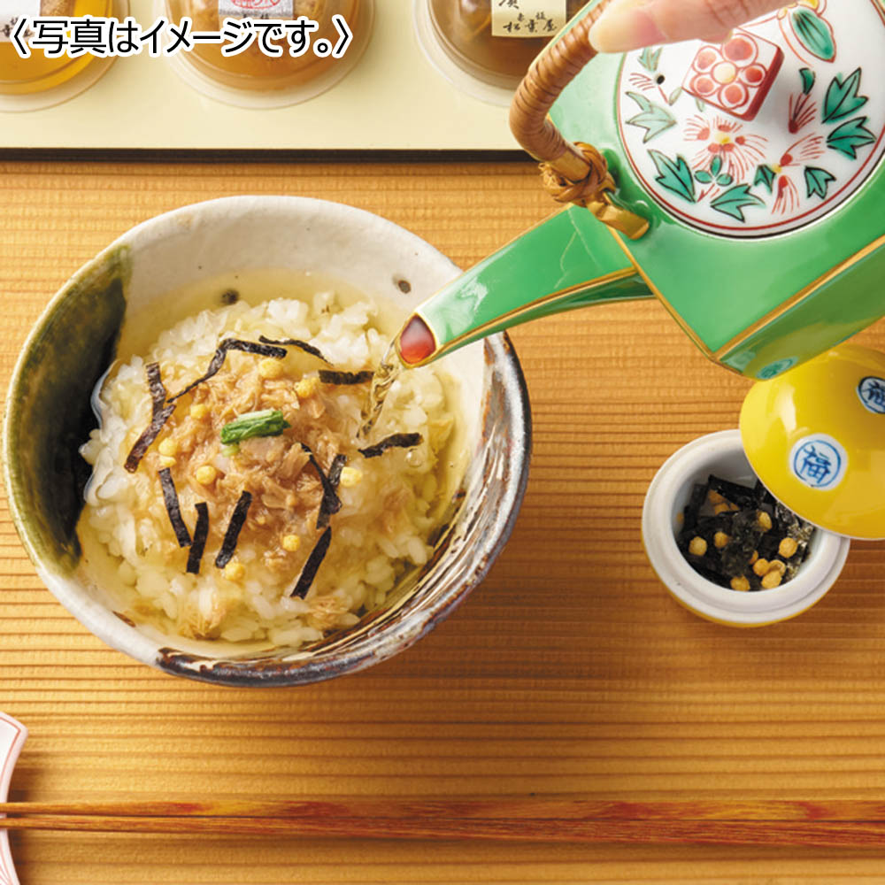 鯛茶漬・鮭茶漬・あさり茶漬 各42g×3、たらこ茶漬 42g×2、お茶漬けの友(海苔・あられ) 1g×11