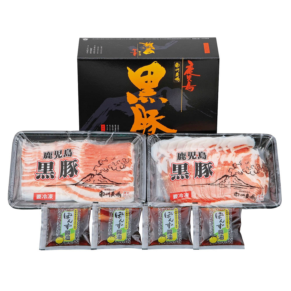 黒豚肩ローススライス・黒豚バラスライス 各200g、ポン酢 50g×4