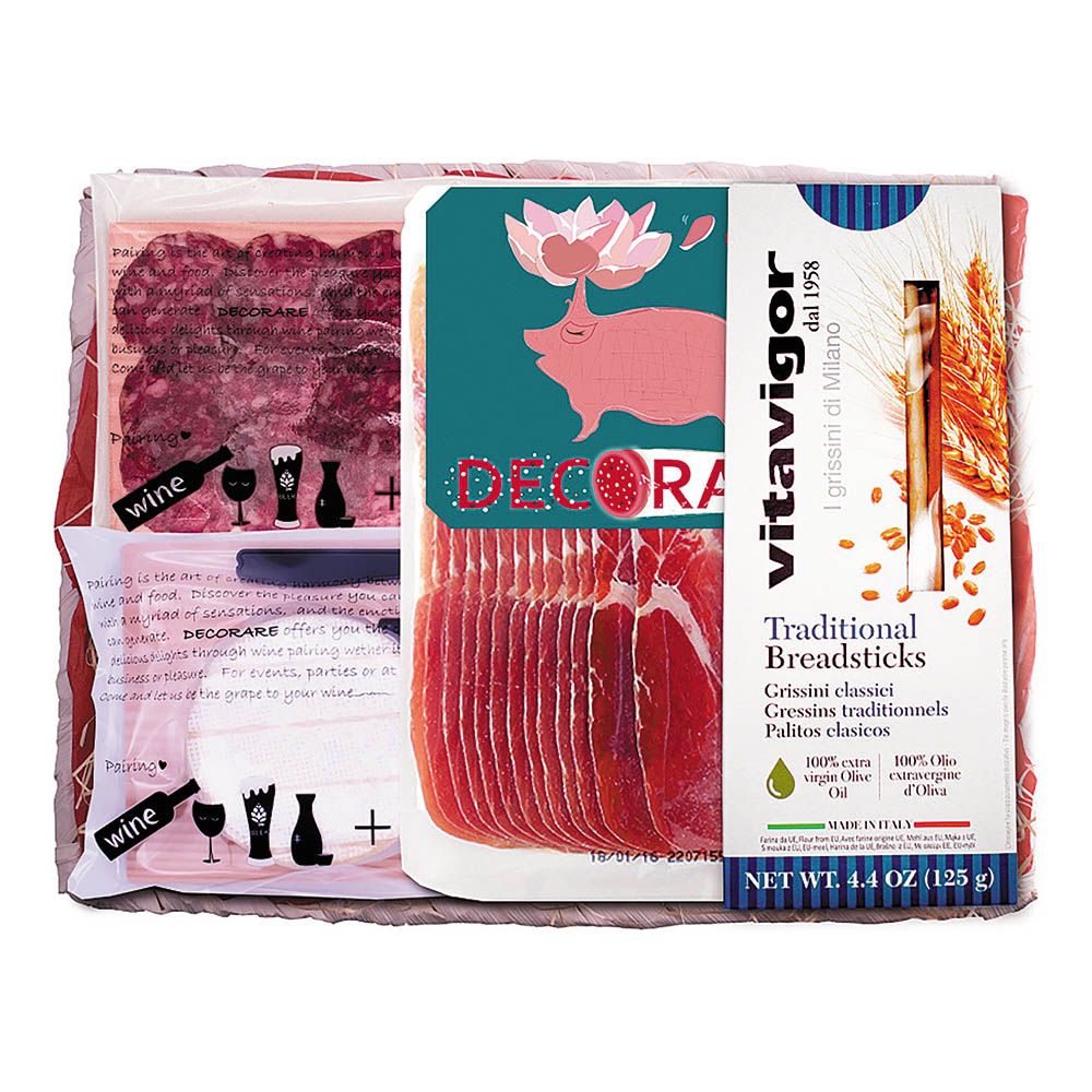 生ハム ハモンセラーノ 200g、イベリコベジョータ 生サラミ 50g、フランス カマンベールチーズ 125g、グリッシーニ(棒状クラッカー) 125g