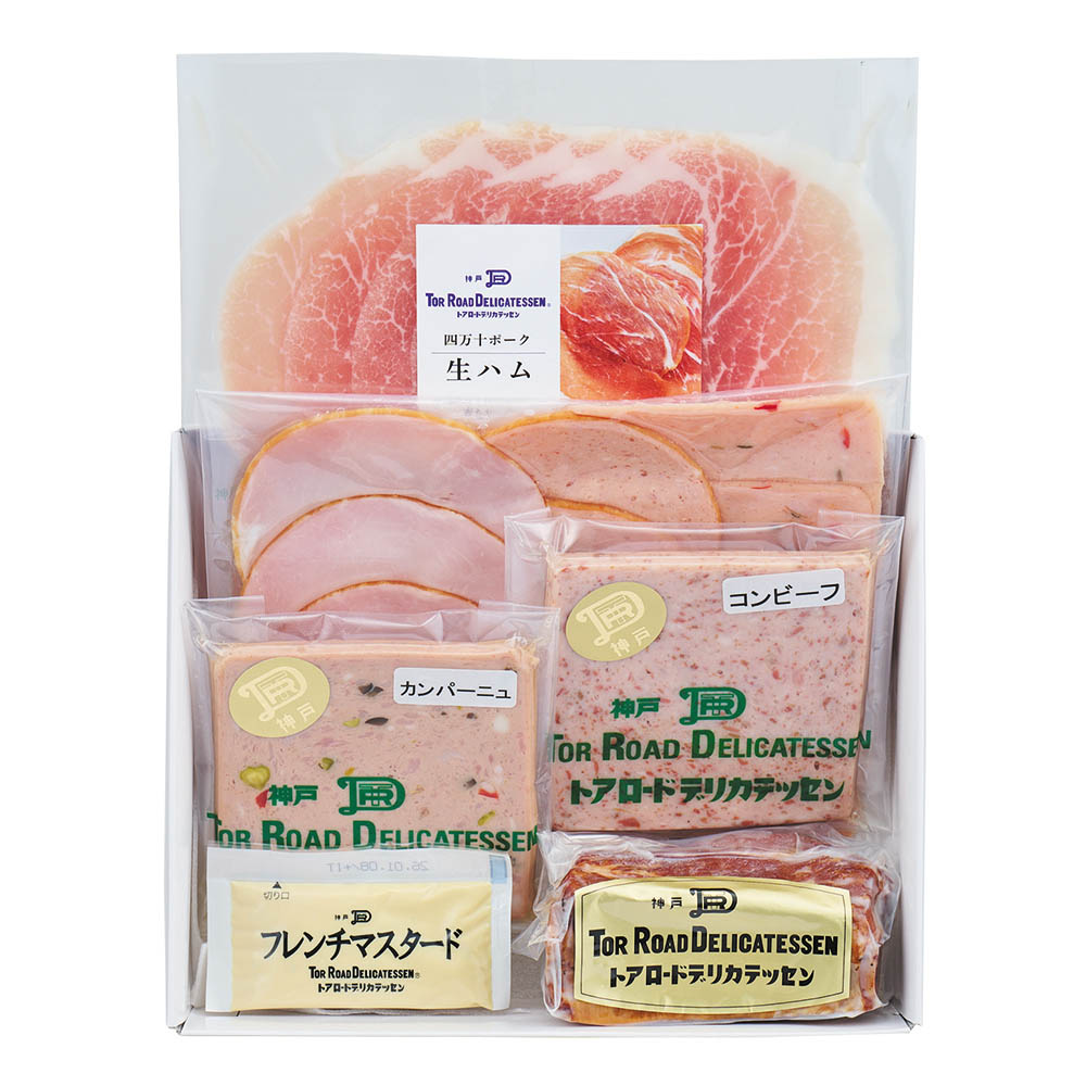 四万十ポーク生ハム 100g、スペアリブ 160g、プチハムセット 160g、カンパーニュ 75g、コンビーフ 75g、フレンチマスタード 10g