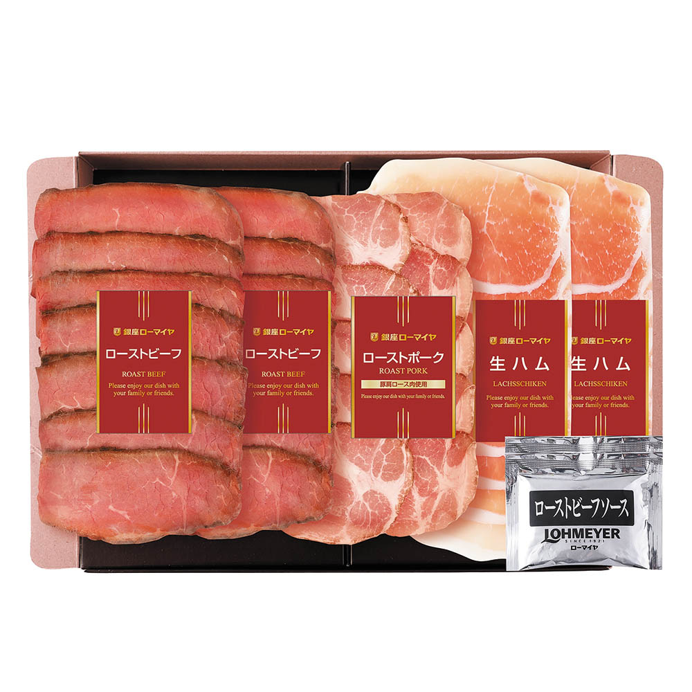 ローストビーフスライス 65g×2、ローストポークスライス 70g、生ハム 55g×2、ローストビーフソース 20g×2